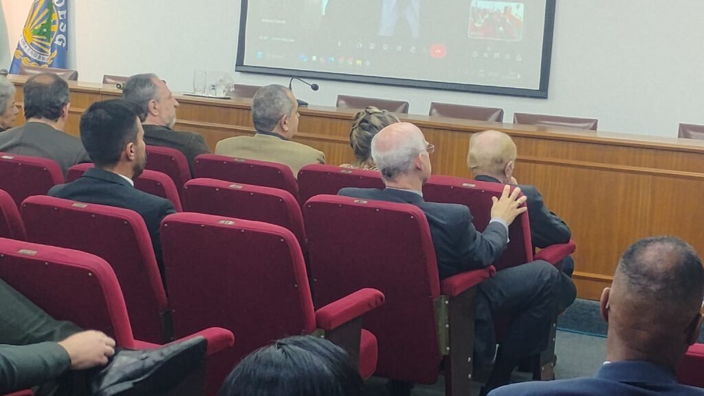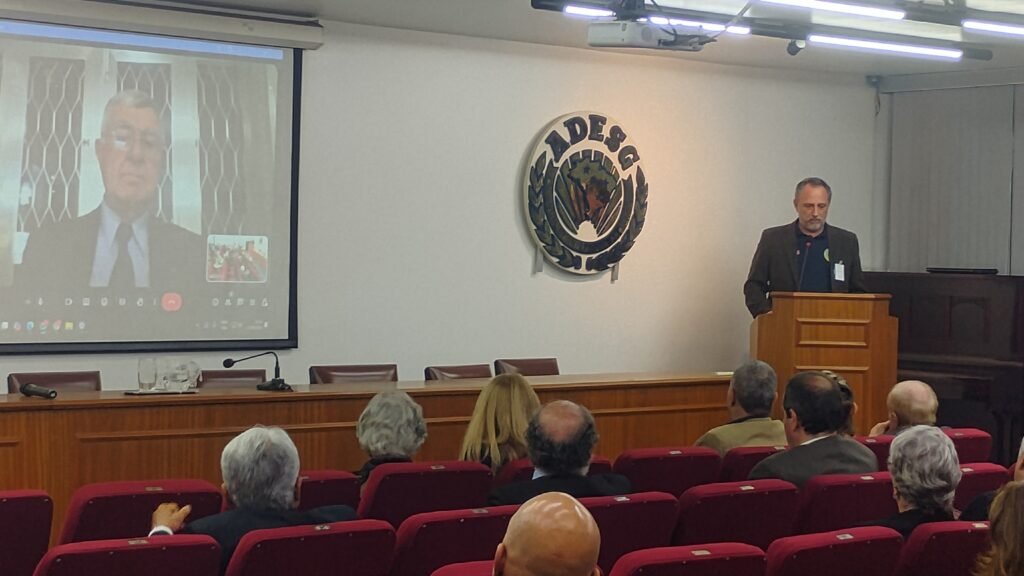 Em sua mensagem, a Dra. Nailde iniciou solicitando um minuto de silêncio em homenagem aos ADESGuianos falecidos, registrando a importância da memória institucional.