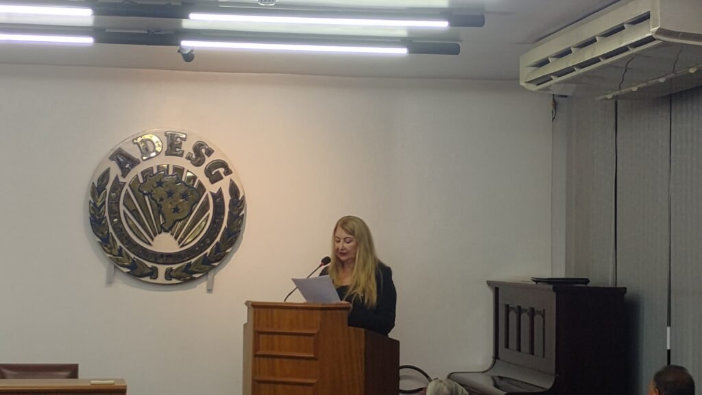 Ela destacou que a SOPEC nasceu para oferecer à ADESG-SP um “espaço do saber”, voltado à produção de ideias, pesquisas e atividades culturais. Mencionou as importantes conquistas de 2025, entre elas: