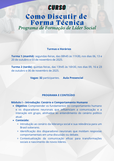 NOVAS TURMAS serão formadas em fevereiro de 2026